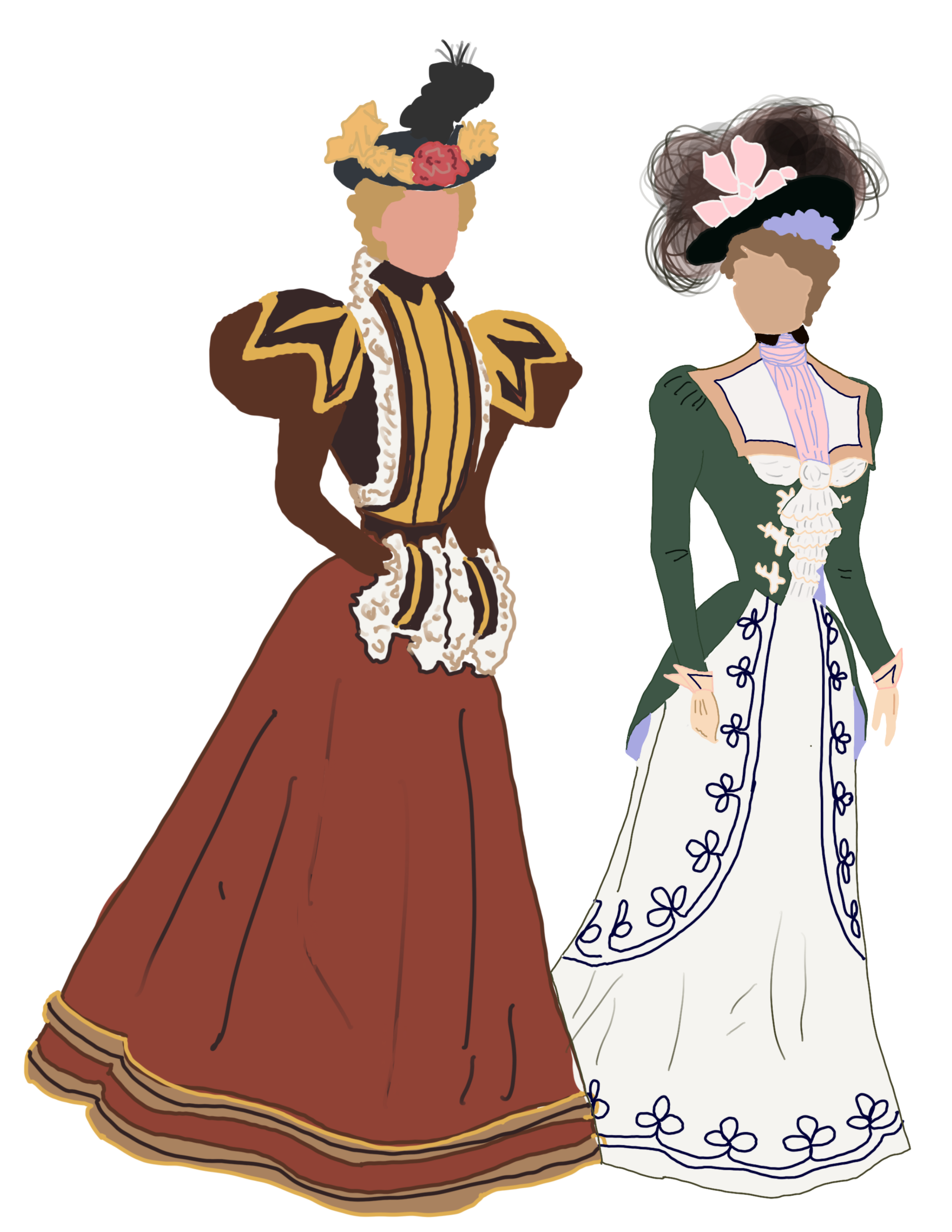 Historical Fashion Sketches Ranging from Rococo to the 90s